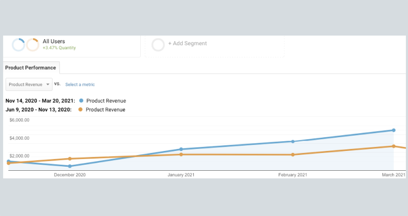 If you want to really understand how your pages are performing, A.B. testing is a great way to get that information and learn other things as well. For example, we added in additional product content for one of our clients. We learned that not only did it increase time on page and conversions, but it also led to a higher average order value. This was due to the fact that users navigated lower down the page to read the content and eventually saw the "related products" section that led to larger cart checkouts. Here is an example of a product which didn't sell at all before we added content to the page: