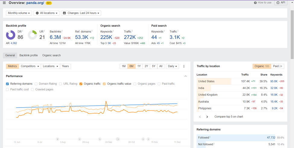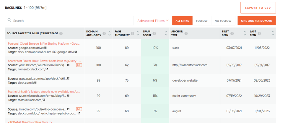 - Linked domains: This feature provides information about the domains that link to a website. It helps you grasp the diversity and quality of the external sites your website associates with.