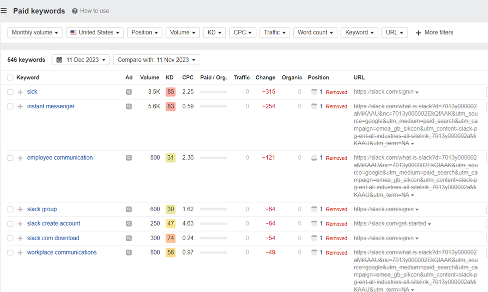 Ahrefs paid search is among the best here. Use it to look at paid keywords, ads, and paid pages.