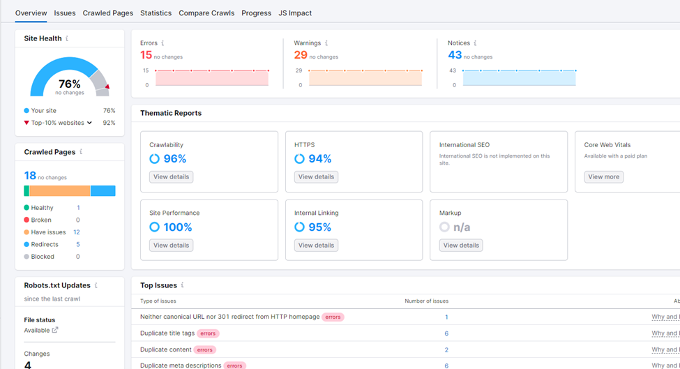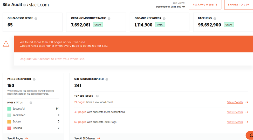 - Ubersuggest: Basic but fundamental technical SEO audit.