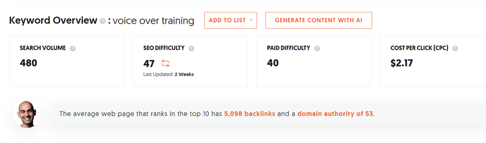 Other incredible features are the AI keyword generator option and the comprehensive backlink analysis.