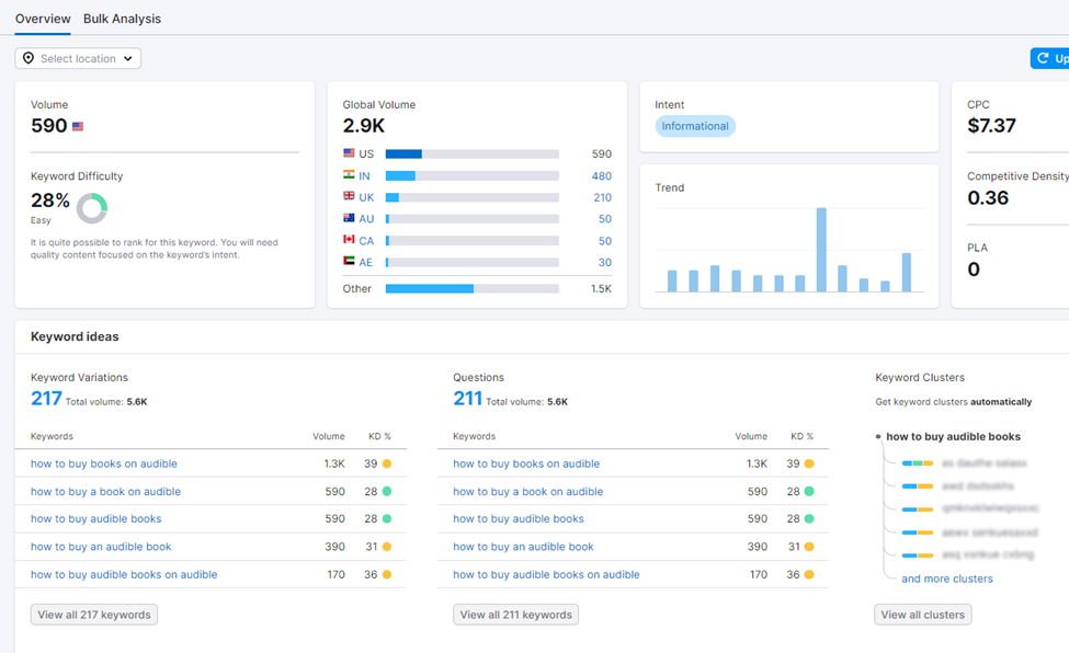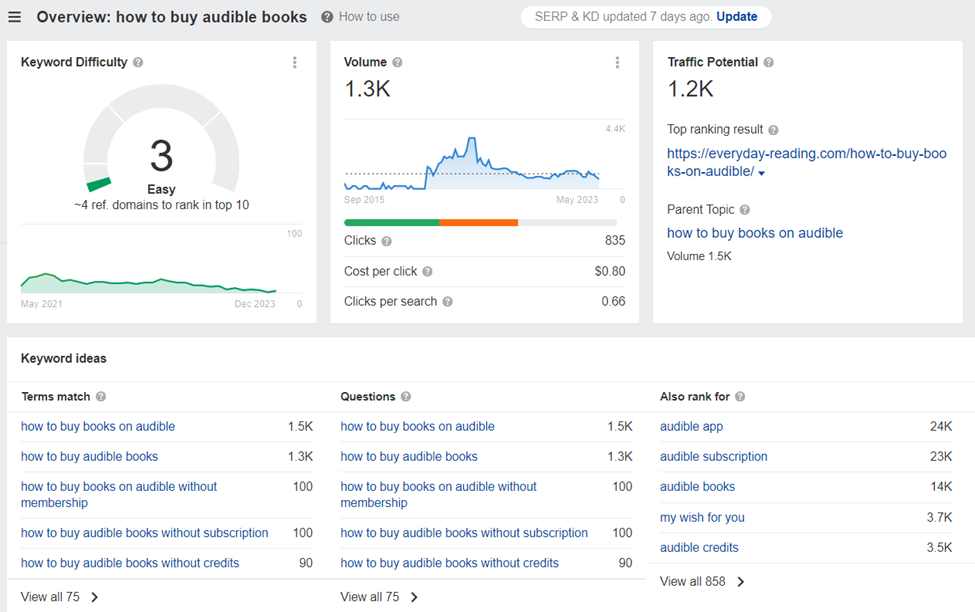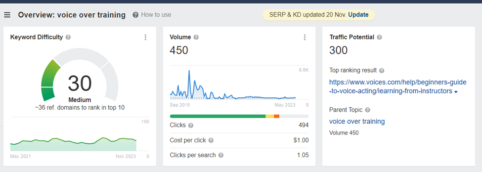 Ahrefs has free separate tools, such as a free difficulty checker and volume checker, but it gets time-consuming to alternate between these tools.