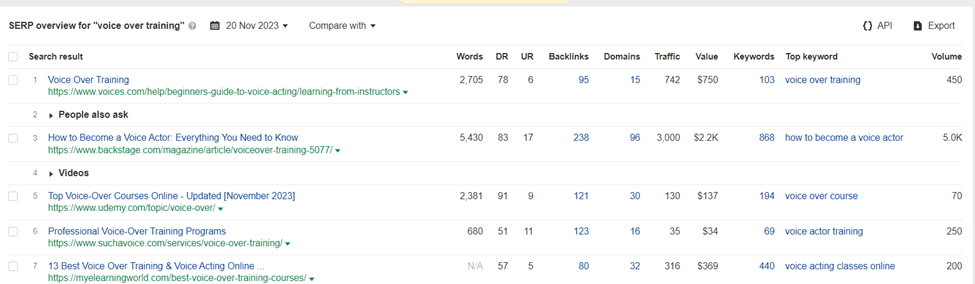 Ubersuggest fills the gap left by Ahrefs and SEMrush in that it’s the easiest tool for beginners.