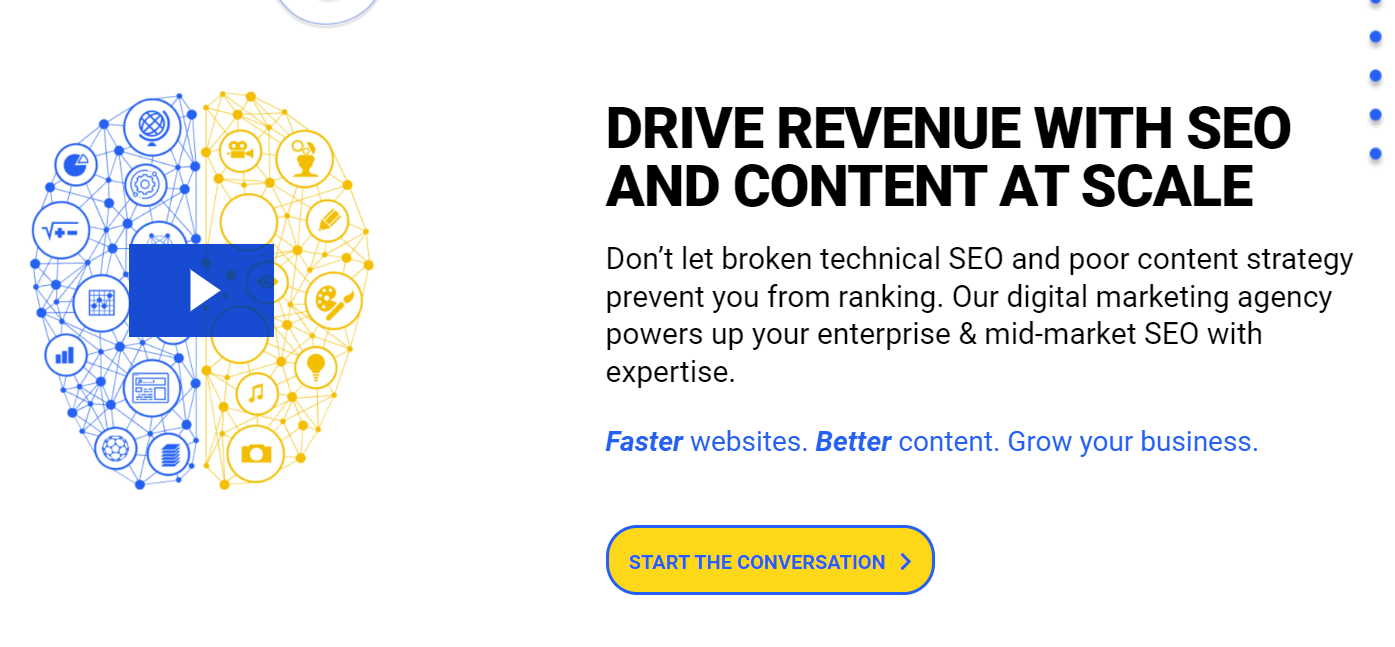 - Key Services: Their services include Customer Generation SEO, paid media, design, video, revenue operations, and comprehensive SEO services that cover the entire lifecycle of a business’s users and customers.