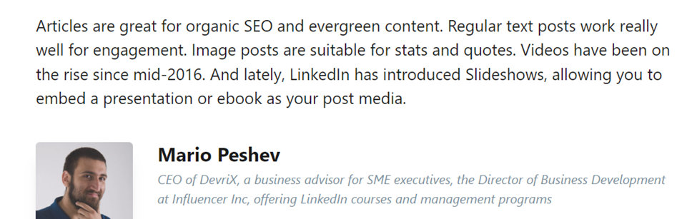Pro tip: Publishing good content is an essential profile ranking factor for LinkedIn.